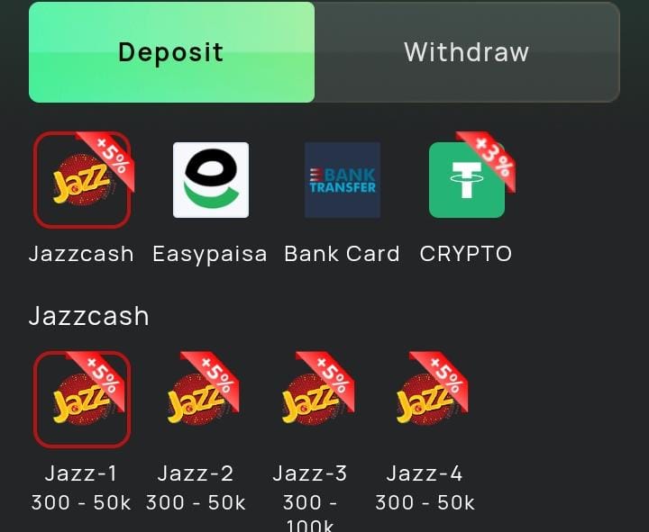 Withdrawal via Easypaisa & JazzCash